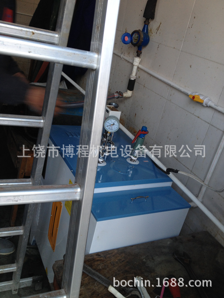 注意事项 1.为了确保用户人身安全,使用前,机壳必须牢固接地。 2.不得随意调整、更换大数值的安全控制保险等零件。 3.清除炉胆内水垢等异物时,可待胆内气压低于0.1Mpa时,再打开底部排污阀,将水垢等异物连同蒸汽一起喷出。打开排污阀前应注意安全,人员要避开排污口,以免发生烫伤等意外。 4.为了延长本机使用寿命,防止电热管积污过多烧毁,故本机宜用软水(增配软水设备),并要定期清除电热管或液位控制器的表面水垢。 5.当电源电压低于使用电压时,继电器、交流接触器吸力下降,可能连续跳动并易损坏,这时应停机,待电压正常后再开机使用。 6.经常断电清洁接线板,检测绝缘电阻应大于2兆欧,接地电阻应小于4欧姆,防止漏电伤人。 7.压力容器,压力控制器,安全阀等器件,需每年到当地检测部门或联系博程机电厂家检验,合格后方可继续使用。 8.应经常检查水管,气管连接部位,如有漏水、漏气应给予密封坚固。 9.修理或更换零件时,应先断电源,放尽蒸汽,切勿带电、带气拆装。 10.水箱内不可缺水,以免烧坏水泵电机,应经常查看。 11.本机装有先进的安全保障装置--安全塞,当压力控制器、安全阀失灵后,压力达到0.5Mpa或0.8Mpa时,安全塞自动排气,安全塞排气后应检修压力控制器,安全阀,更换安全阀。 绝密押韵