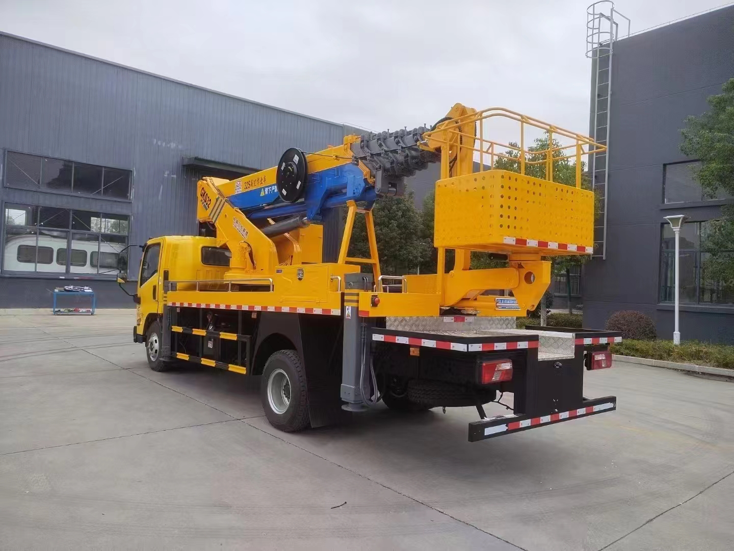 多节多边形高强钢作业臂:作业臂采用多节多边形高强钢设计,这一创新结构不仅极大地提升了作业臂的强度与稳定性,还显著减轻了自身重量。在同步伸缩技术的支持下,作业臂能够快速、平稳地伸展至作业高度 38 米,无论是城市高楼大厦的外墙施工、清洁,还是电力设施的高空检修、通信基站的维护,都能轻松胜任。多边形的设计增加了作业臂的抗扭能力,使其在作业过程中能够承受更大的外力,确保作业安全与。