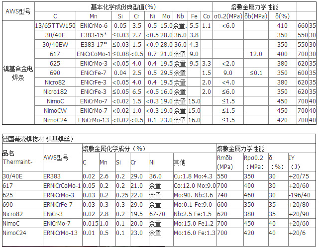 镍基合金焊丝具有耐活泼性气体,耐苛性介质,耐还原性酸介质腐蚀的良好性能,又具有强度高,塑性好,可冷热变形和加工成型及可焊接的特点,因此,广泛应用于石油化工,冶金,原子能,海洋开发,航空,航天等工业中,解决一般不锈钢和其他金属,非金属材料无法解决的工程腐蚀问题,是一种非常重要的耐腐蚀金属材料。镍基合金是指以镍为基并含有合金元素,且能在一些介质中耐腐蚀的合金。以其化学成分特点进行分类时,主要有镍,镍铜合金,镍钼(镍钼铁)合金,镍铬(镍铬铁)合金,镍铬钼(包括镍铬钼合金和镍铬钼铜合金)及镍铁铬(既铁镍基合金)等几类。纯镍焊丝ERNi-1 用于 焊接 200 、 201 镍合金以及镀镍钢板; 钢与镍异种材料的焊接; 钢的表面堆焊。 镍铜焊丝ERNiCu-7 蒙乃尔 400 合金自身的焊接;以及蒙乃尔 400 合金与钢的焊接; 用于钢的表面堆焊 。 镍铬焊丝 ERNiCrFe-3 用于抗蠕变接头的焊接异种材料焊接; - 奥氏体、铁素体钢和高镍合金的焊接、含镍 9% 合金钢焊接 镍铬焊丝ERNiCrFe-7 用于合金的焊接和钢的堆焊,特别适用于核反应堆的建设。 镍铬钼焊丝 ERNiCrMo-3 INCONEL625 、 INCONEL825 、 INCONEL25-6Mo 以及 MONEL400 合金的焊接; - 超高强度奥氏体钢与 INCOLOY020 合金之间的焊接; 镍基合金与不锈钢异种材料间的焊接; 钢的堆焊。