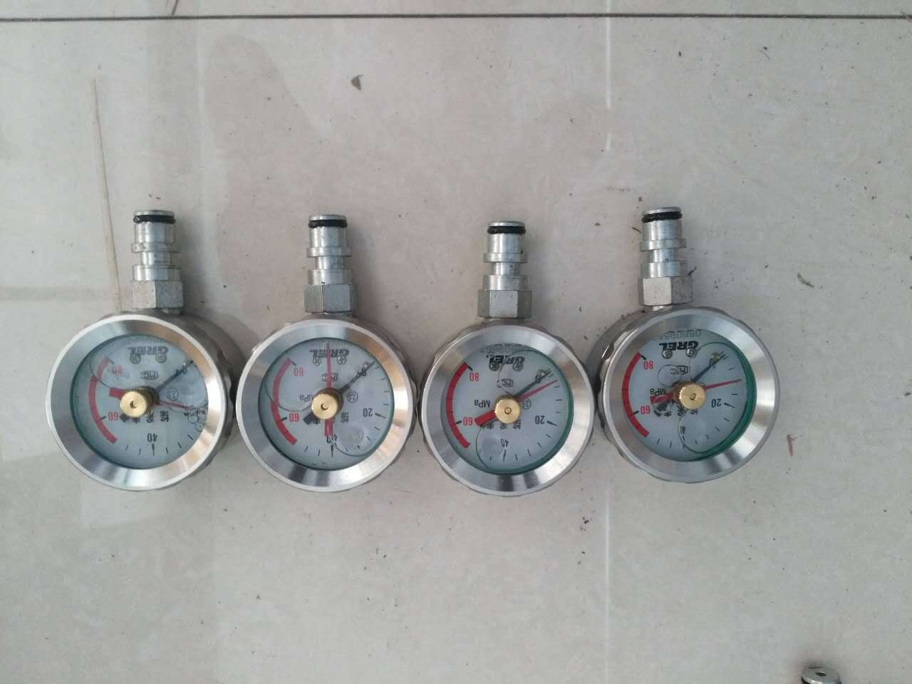 二、 技术参数:(1)测量范围:0—80MPa (2)显示方式:指针式 (3)精度:2.5 (4)接头方式:快换接头 (5)表内:抗震硅油