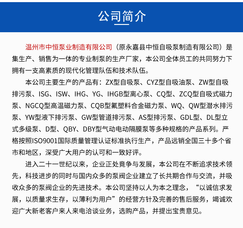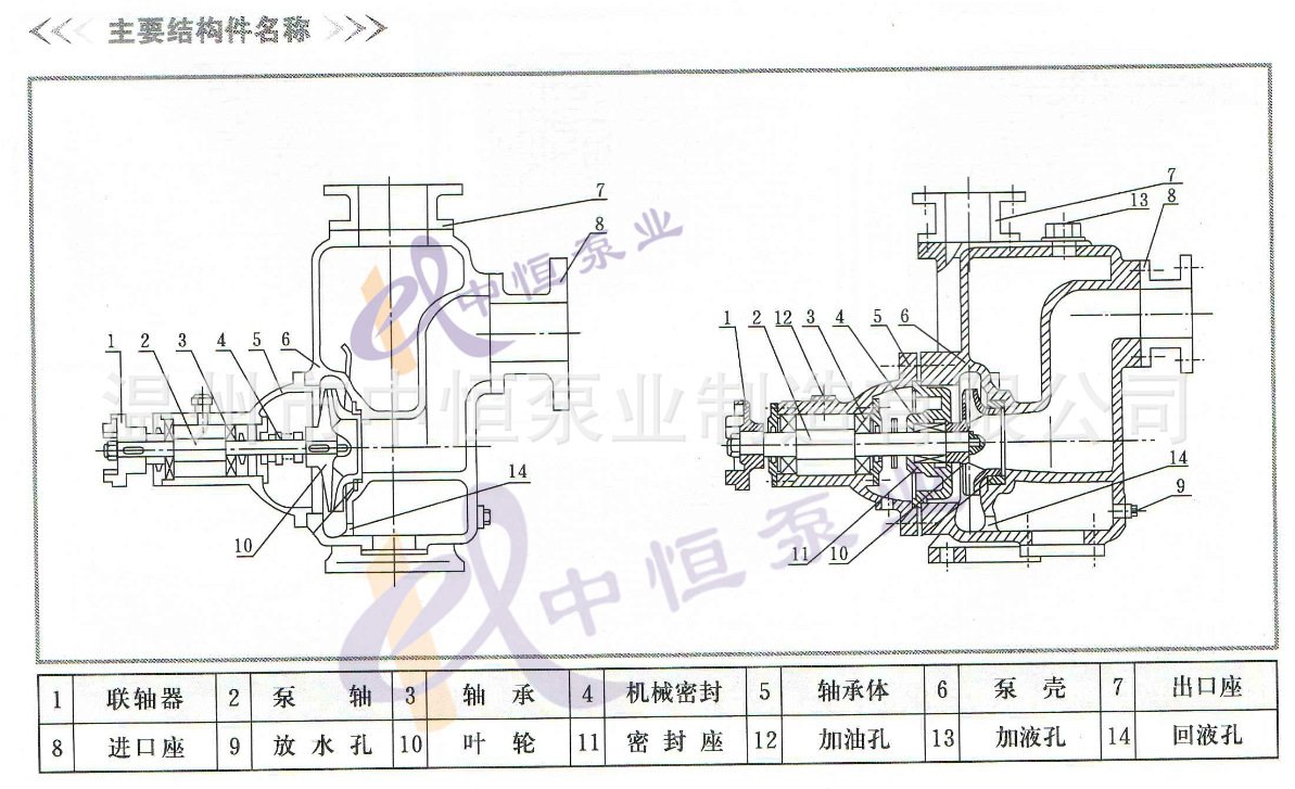 1环境温度≤45℃,介质温度≤120℃。2.介质PH值铸铁泵为6~9,不锈钢泵为1~14。3.通过颗粒直径为泵口径的40%,纤维长度为口径的5倍。4.介质中杂质总重量不超过介质总重量的15%。
