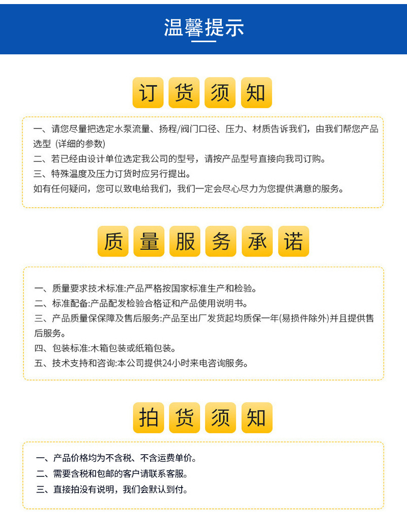 ◆用手转动联轴器是否有卡带或异声等现象. ◆打开泵上方的加水口,加入储液水不少于泵体容积的三分之二,关闭。以后开机不需再灌引水。 ◆接上电源试转一下,从电机端看,为顺时针转向。(严禁反转) ◆开机工作,观察运行是否正常.若有异常现象,应找出原因,加以排除。