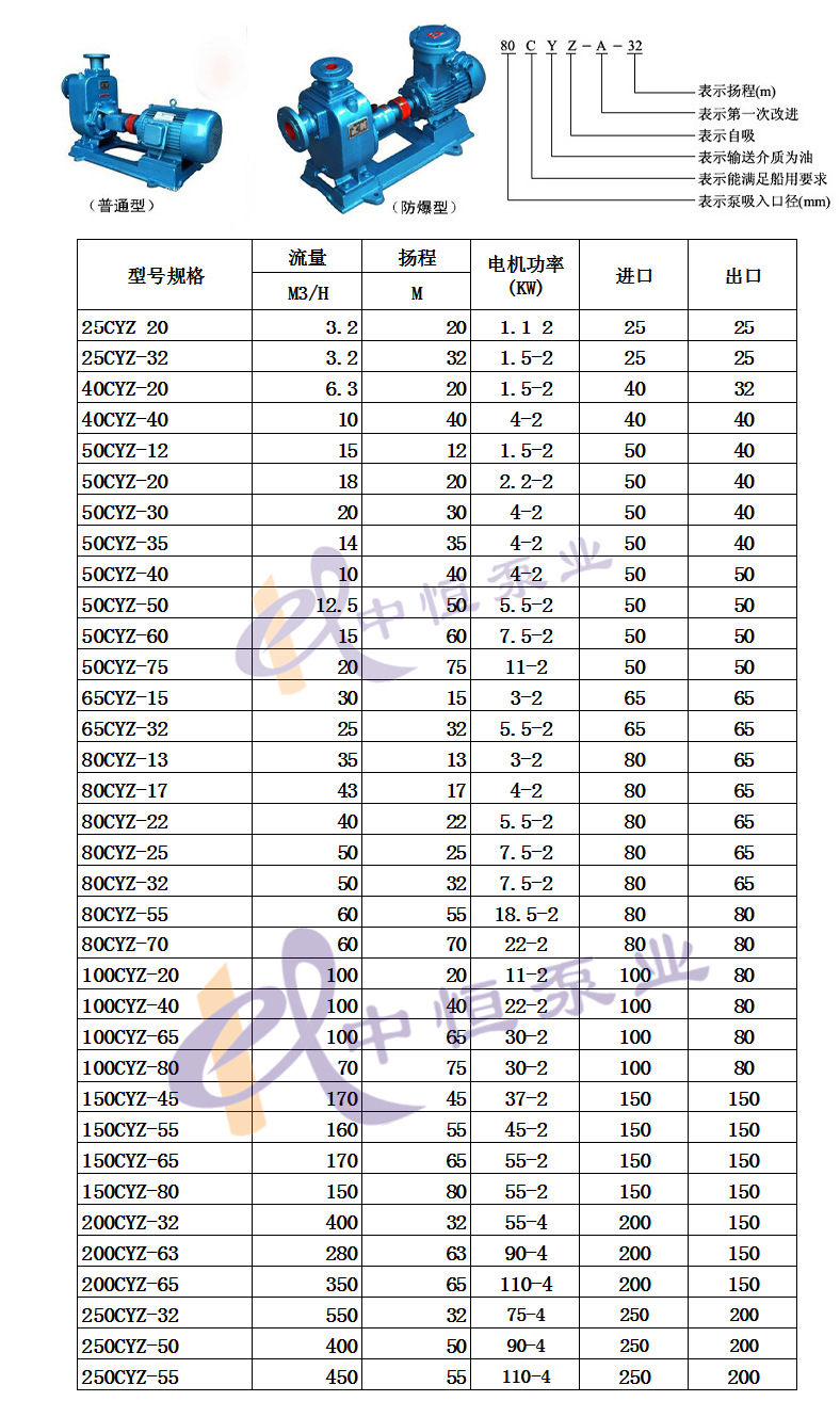 1、CYZ-A自吸油泵,具有结构简单、操作方便、运行平稳、维护容易、效率高、寿命长,并具有其它泵所不具有的自吸功能等特点。管路中不需底阀,工作前只需保证泵体内储有定量引油即可。具有“一次引流,终身自吸”功能,用于油轮或船用油泵时,可兼作扫舱泵,扫舱效果良好。