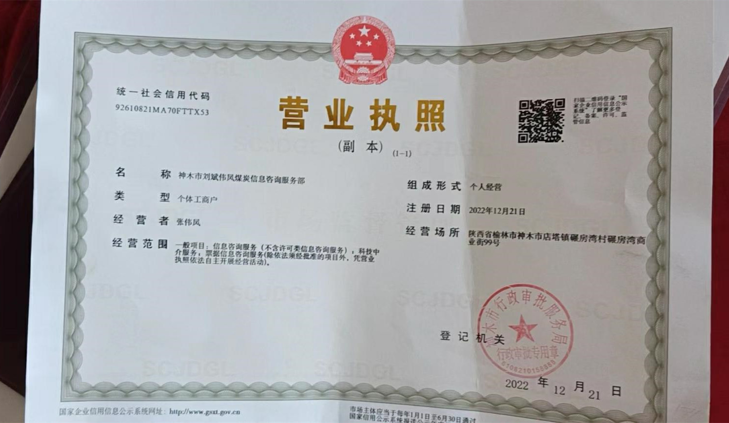 神木市刘斌伟凤煤炭信息咨询服务部