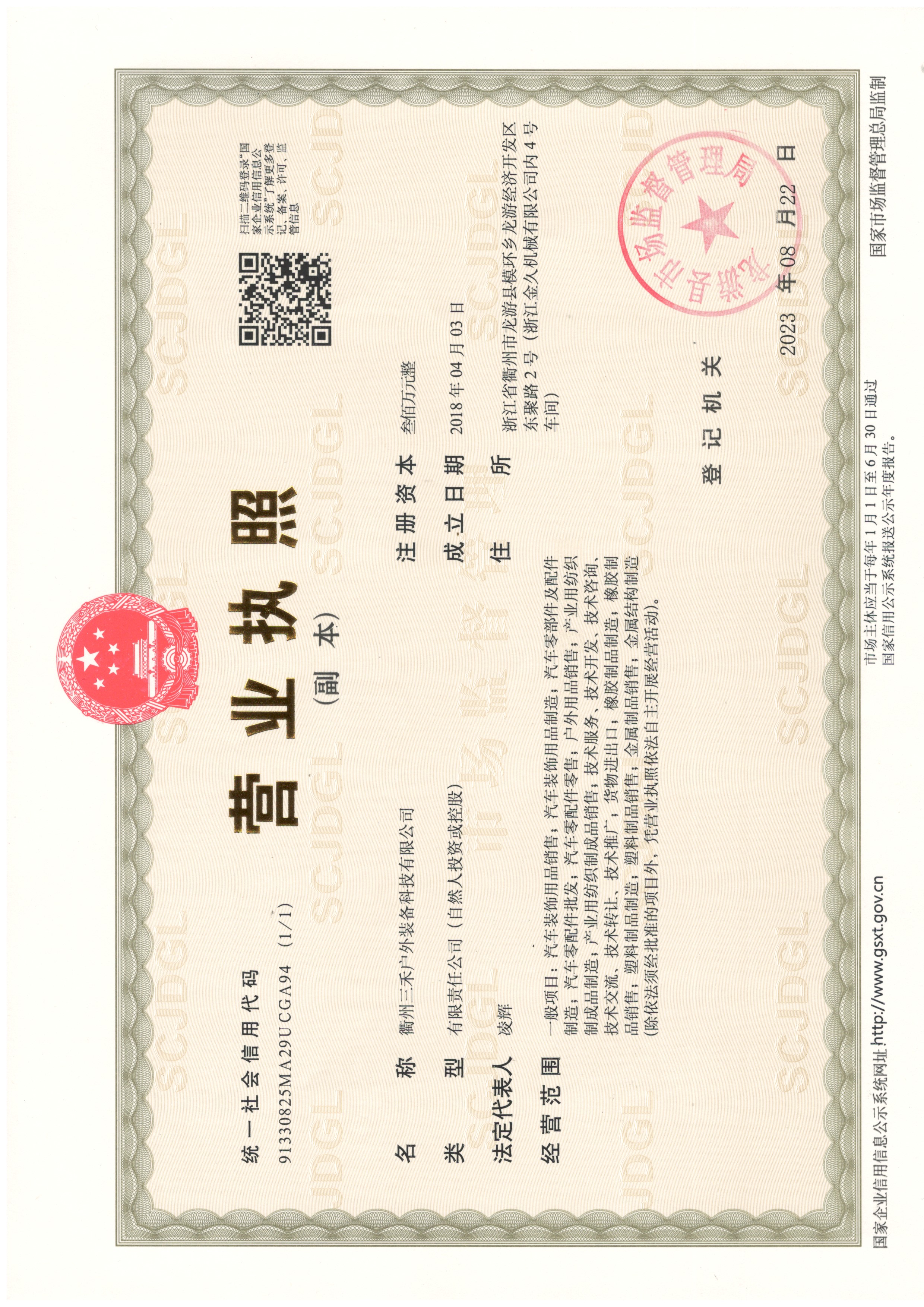 衢州三禾户外装备科技有限公司
