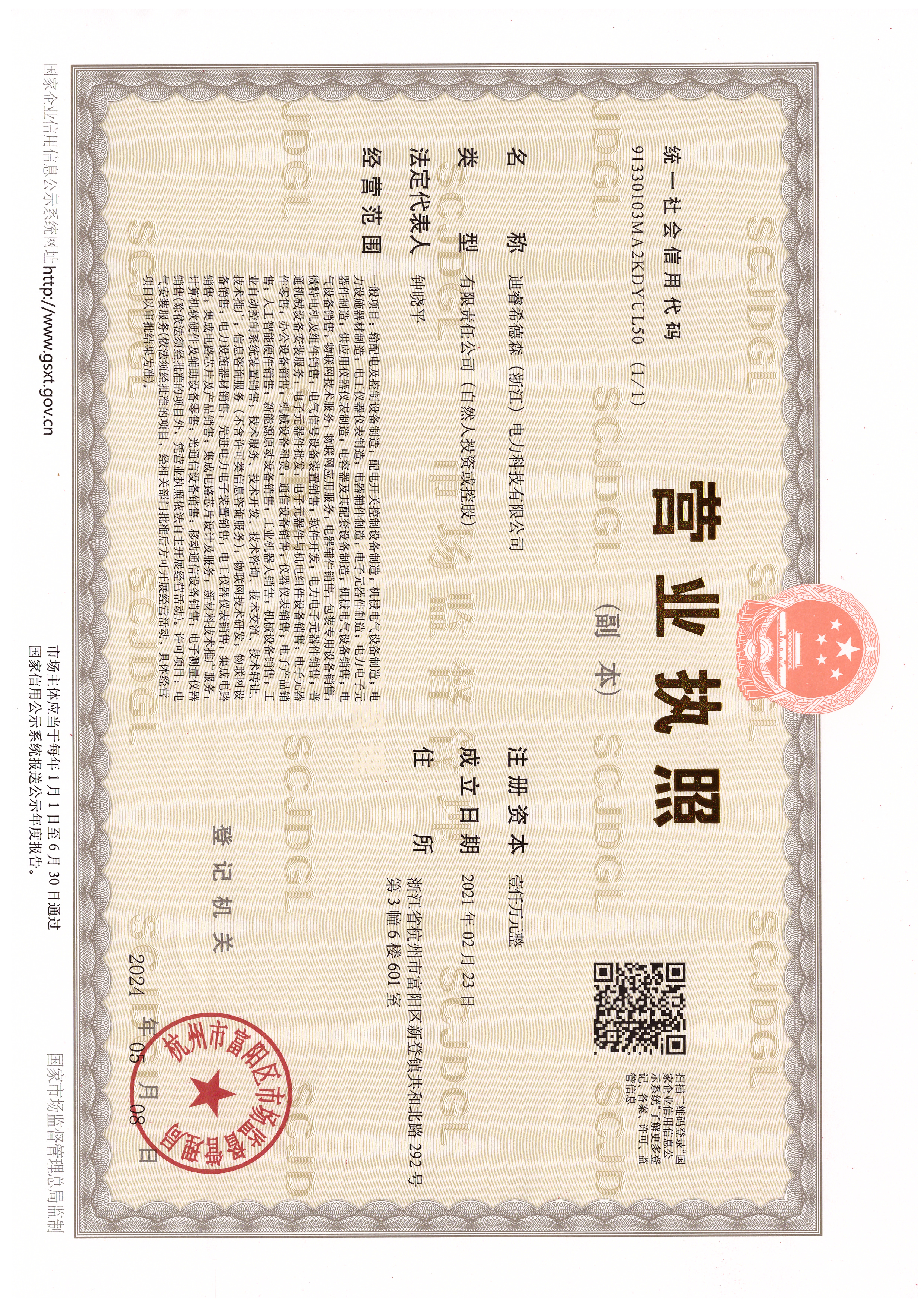 迪睿希德森(浙江)电力科技有限公司