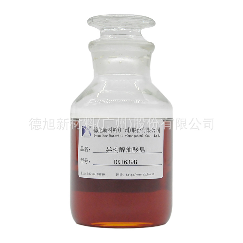 异构醇油酸皂 DX1639B是一种长碳链烷基酸异构多醇胺皂类有机化合物,具有优秀除蜡、增稠、乳化、润滑等性能。可快速渗透、剥离抛光蜡,具有除蜡去污快速彻底、渗透润湿能力强、配比浓度低、持效时间长等特点,是除蜡水的重要组成成分。