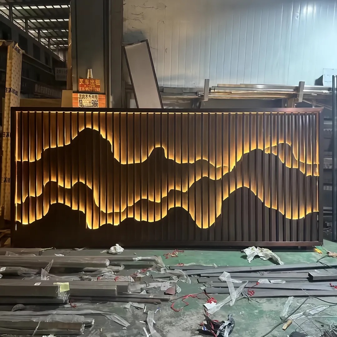 铝屏风精选优质铝合金型材或板材,经激光切割、镂空雕花、焊接打磨等工艺精制而成。整体结构稳固、轻便耐用,兼具防锈、防潮、耐腐蚀等特性。表面可采用静电粉末喷涂、木纹转印或氟碳烤漆处理,色彩丰富,质感细腻。设计风格多样,涵盖中式、现代简约、欧式镂空等,可定制图案与尺寸。适用于家居玄关、客厅隔断,以及酒店、茶楼、办公区的空间分区与背景装饰,既实现功能分区,又提升整体环境的美学格调。