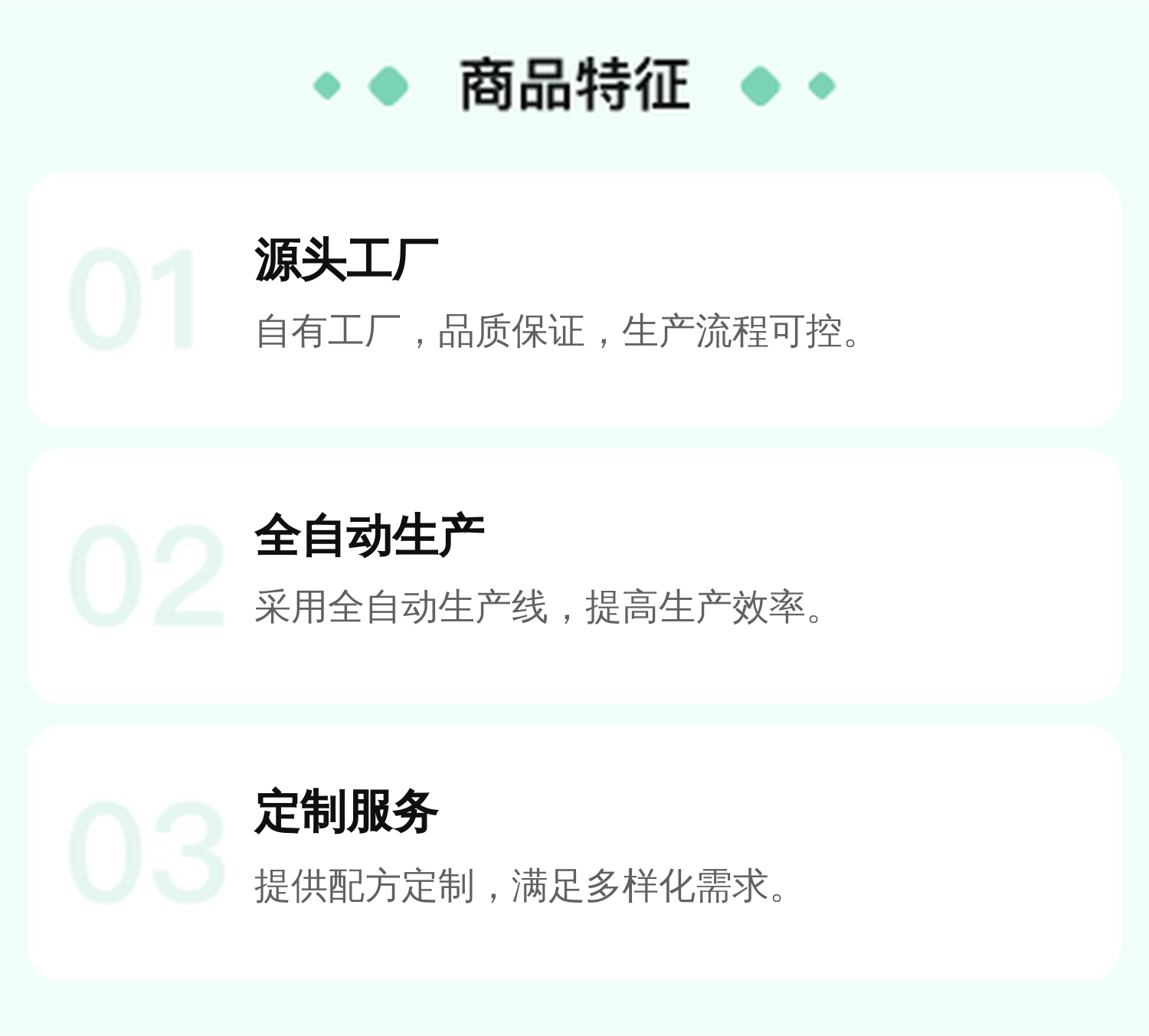 标准生产、行业经验、配方设计、全程质检等六大优势 |