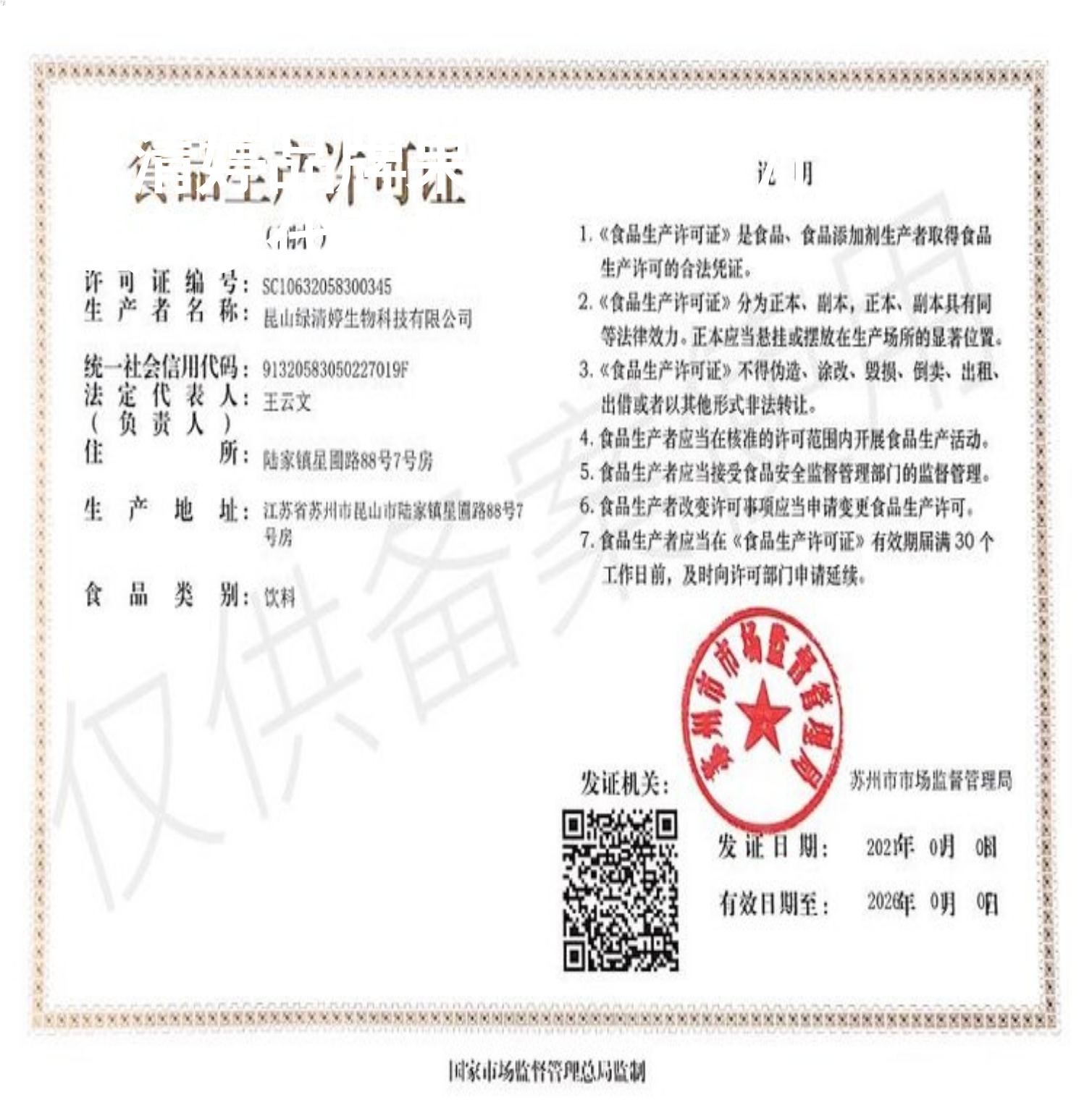 食品生产许可证编号 |