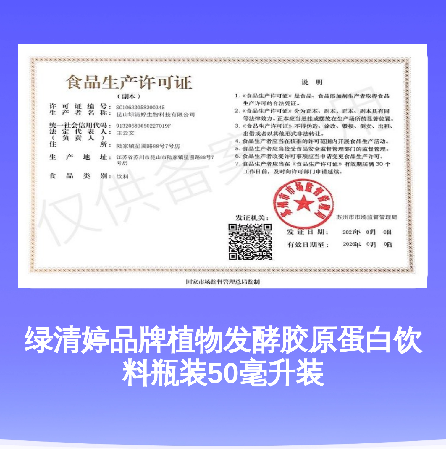 绿清婷品牌植物发酵胶原蛋白饮料瓶装50毫升装