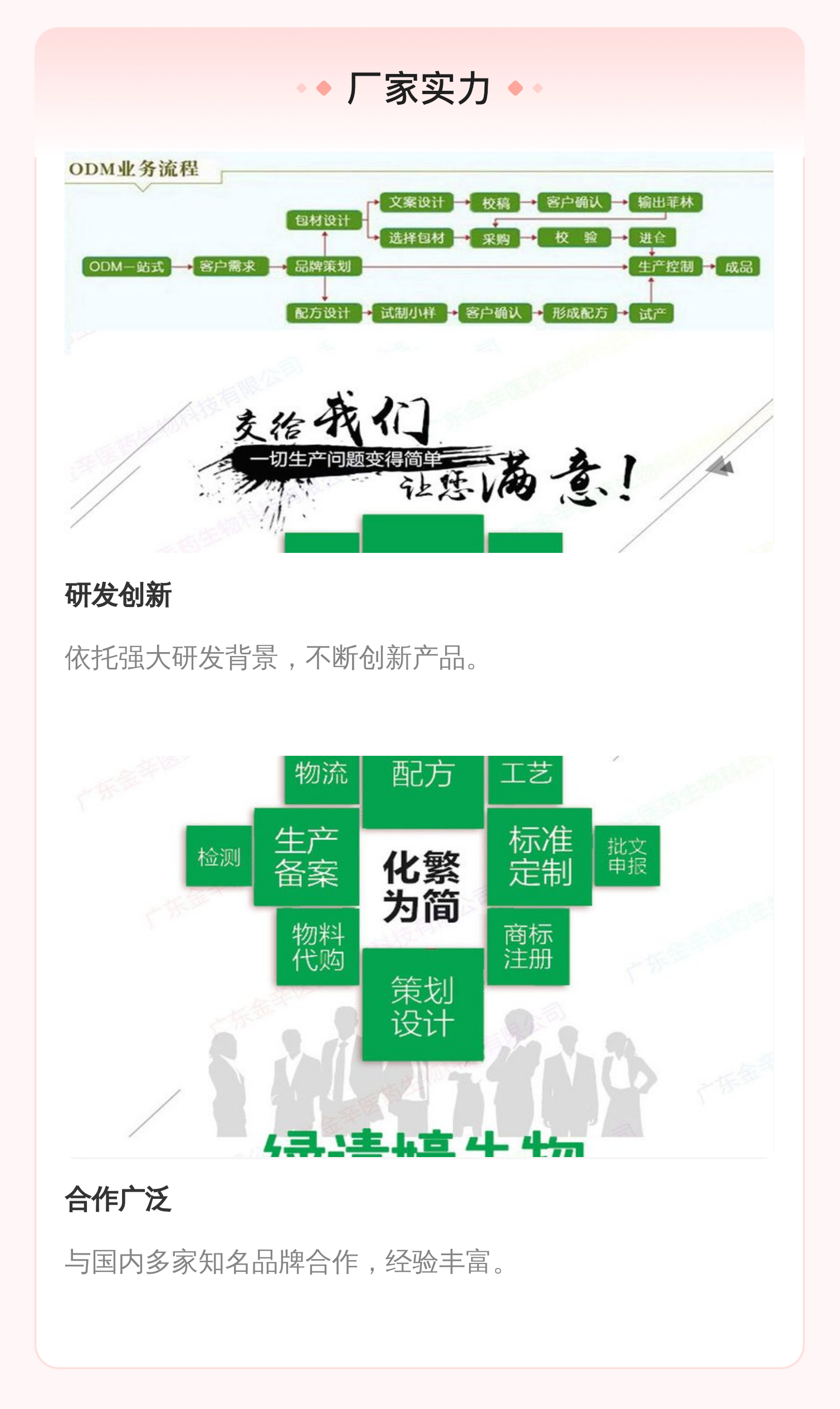 研发→配方设计→产品备案→生产加工→成品发货 |
