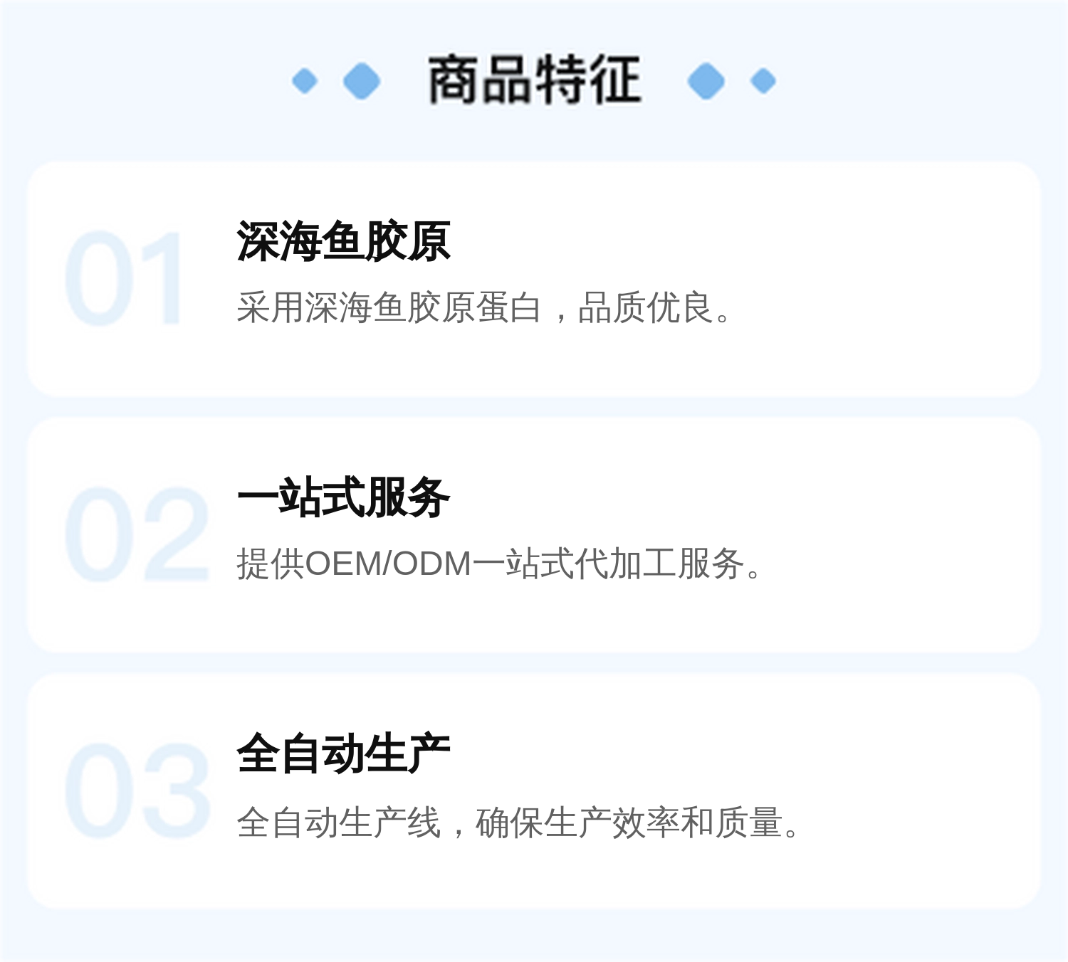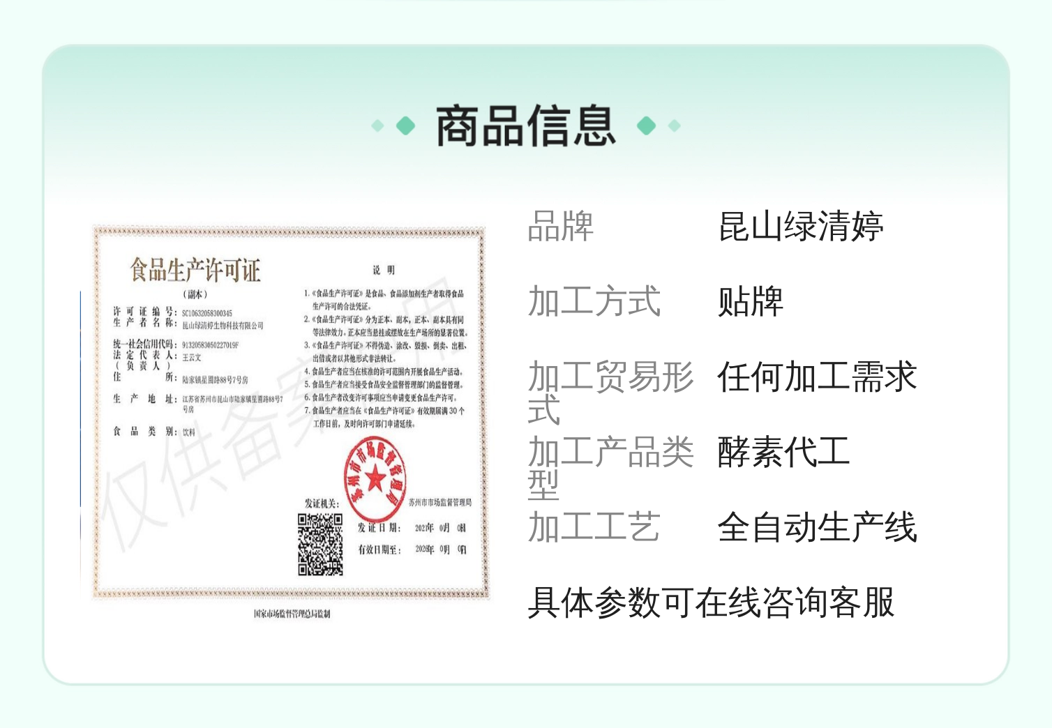 接单洽谈、材料监测、打样、合同签订、包装设计、配方研发、代工生产、产品确认、包装入库 |