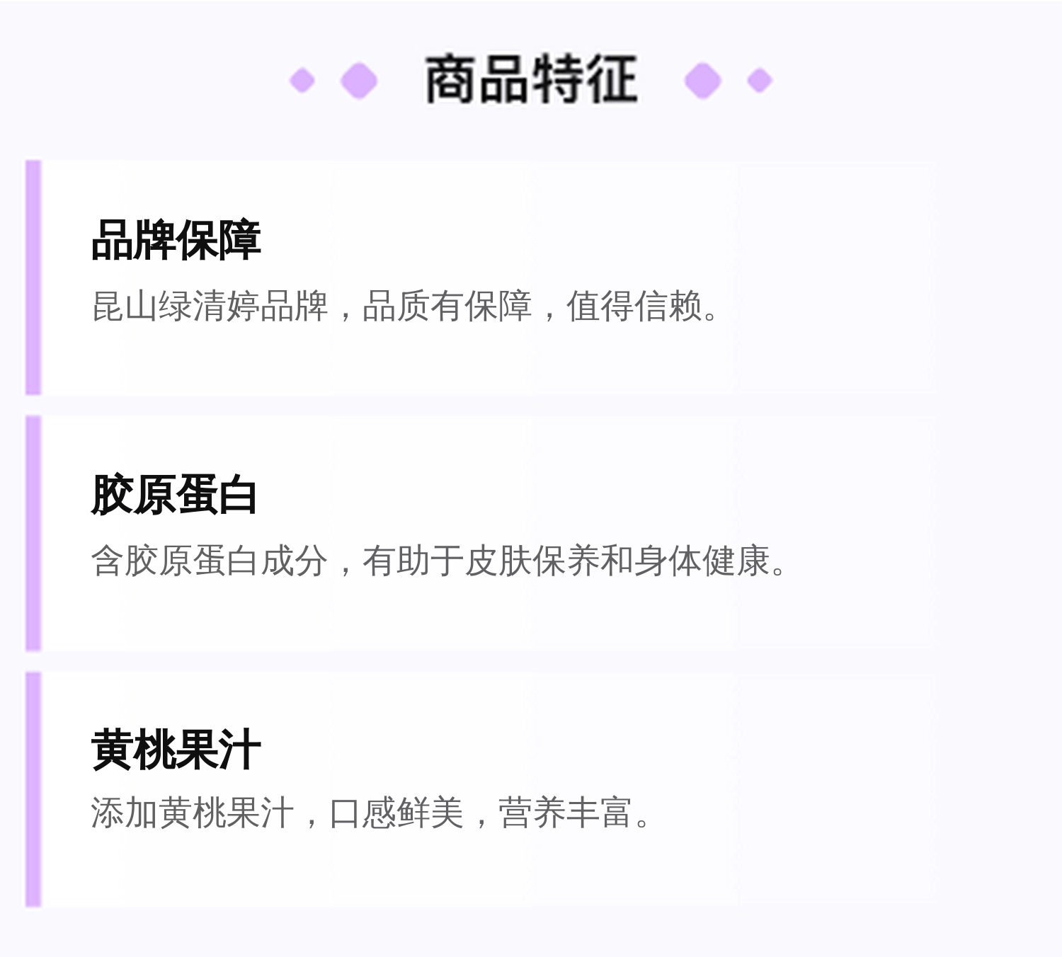 胶原蛋白、黄桃果汁等 |