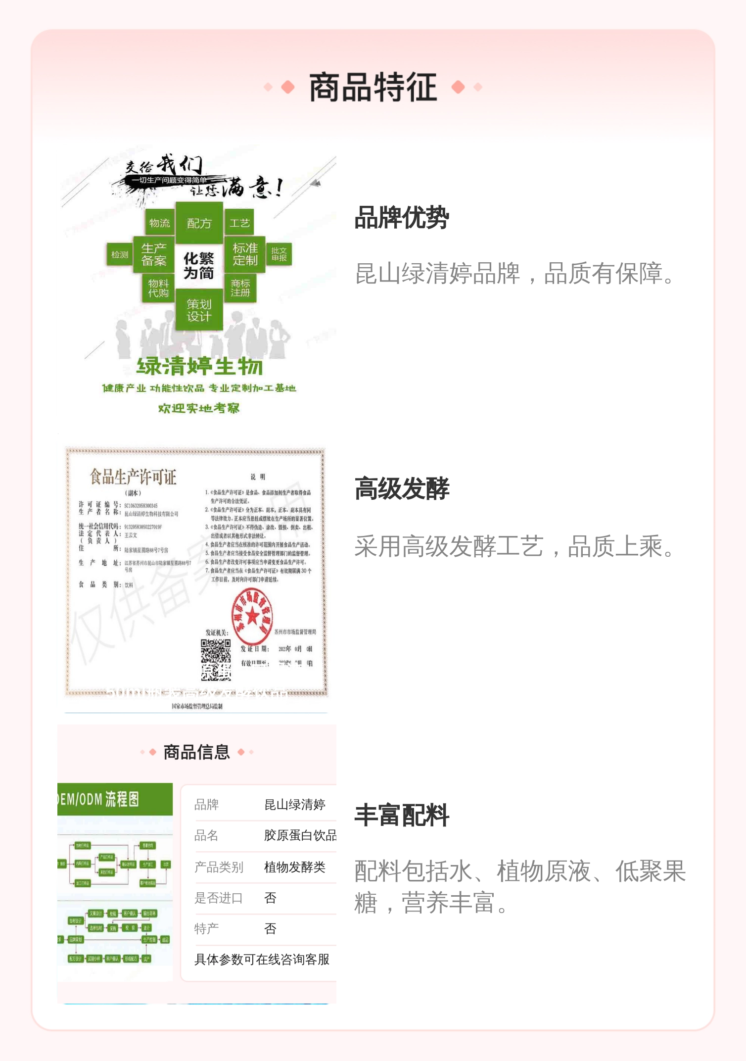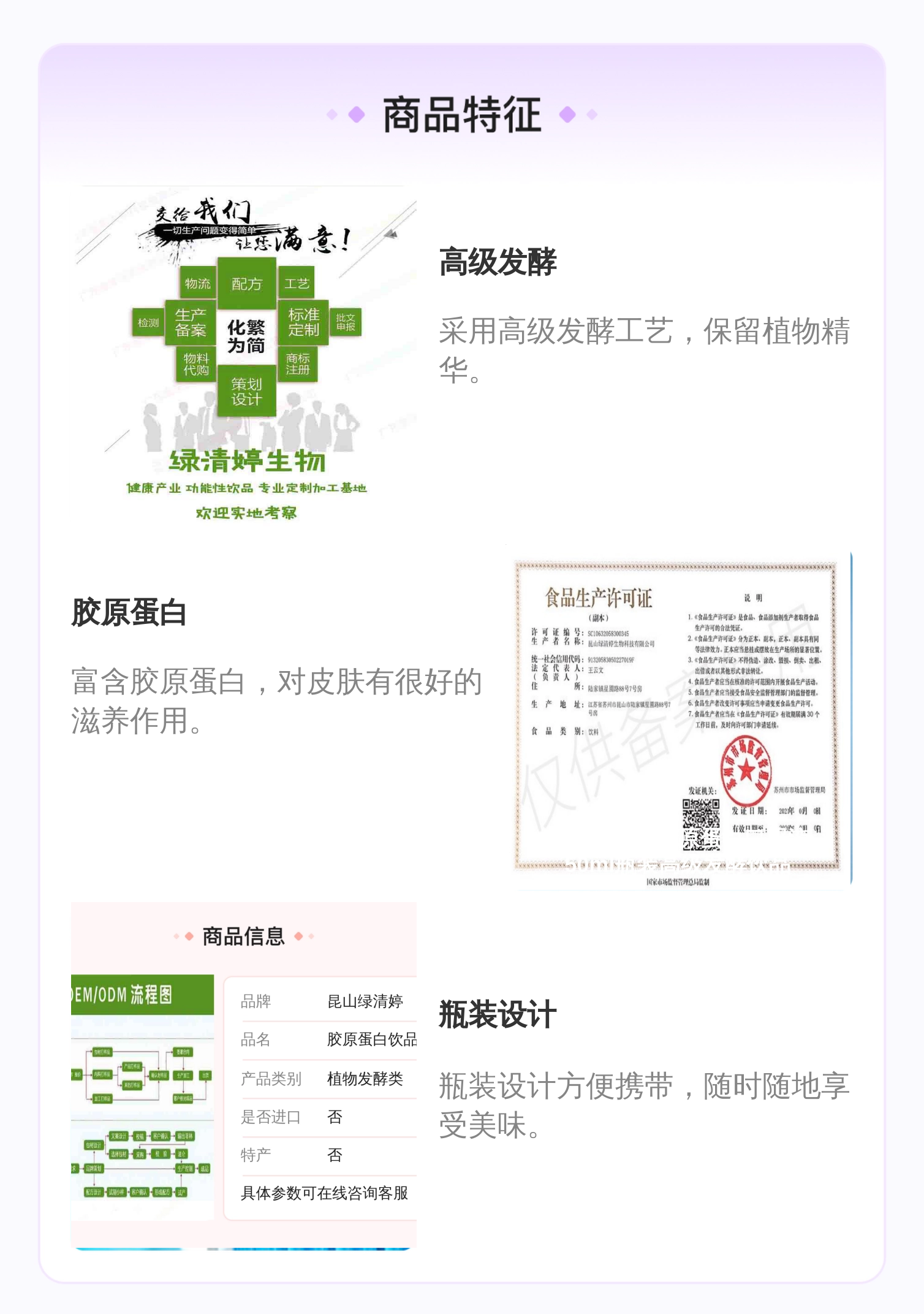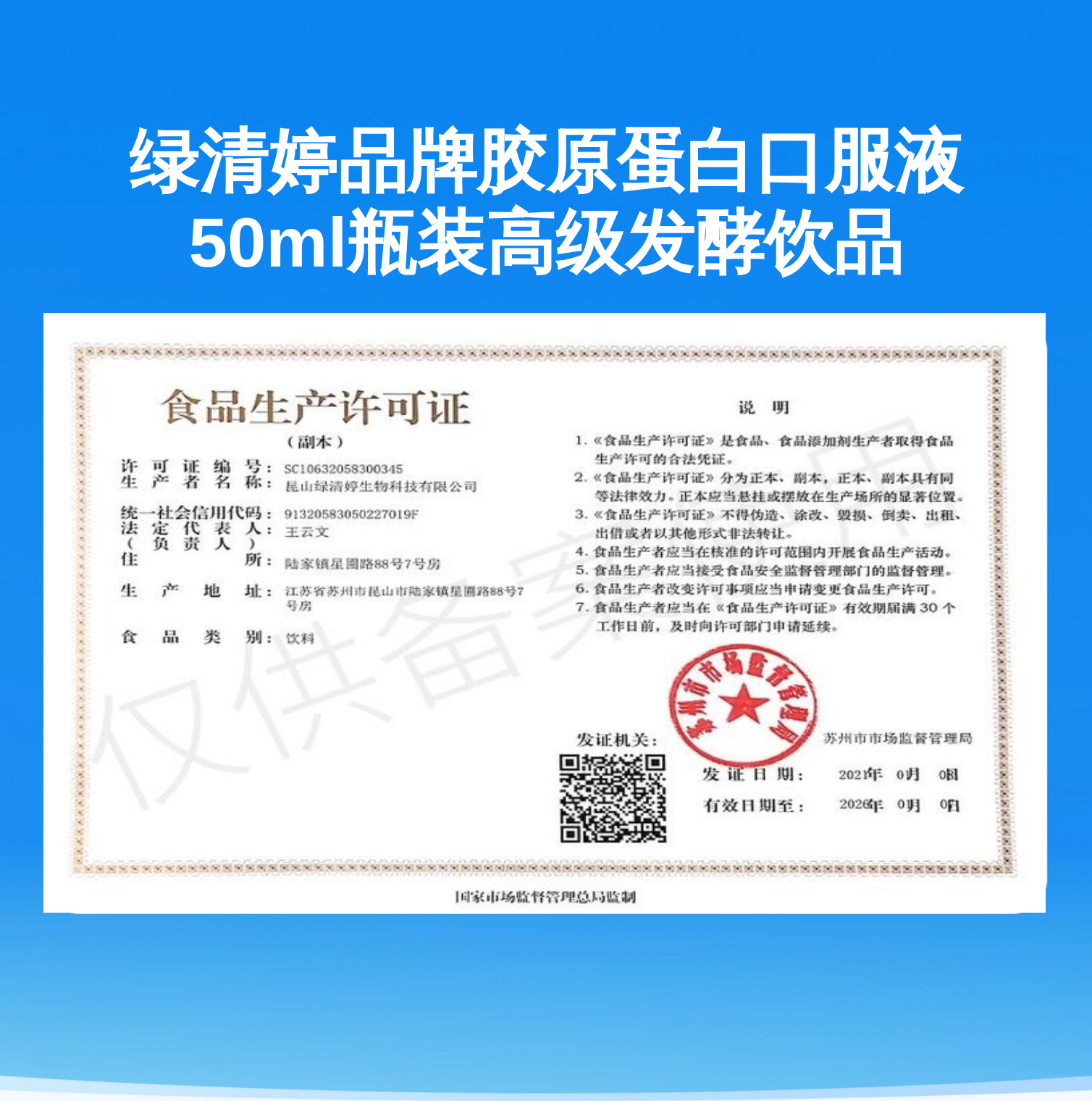 绿清婷品牌胶原蛋白口服液50ml瓶装高级发酵饮品