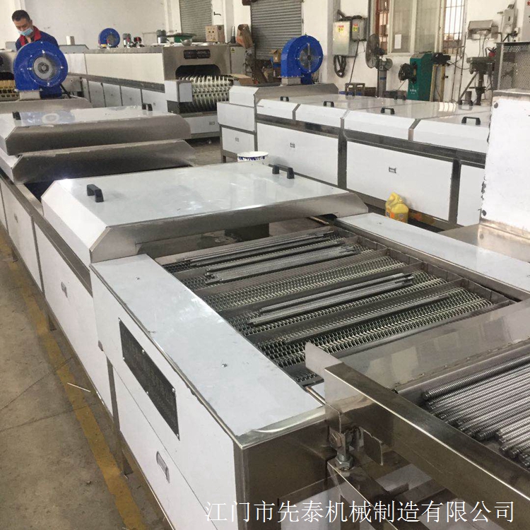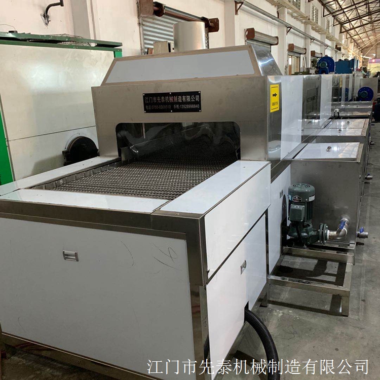 不锈钢猪食槽清洗线 饮水碗除油清洗烘干设备由输送带送入待清洗的工件,经过一定的程序,完成工件的除油除蜡、清洗、烘干、然后由输送机自动送出。该清洗线具有设计合理、工效及自动化程度高等特点,是金属器皿、五金电器生产厂家理想的清洗设备。