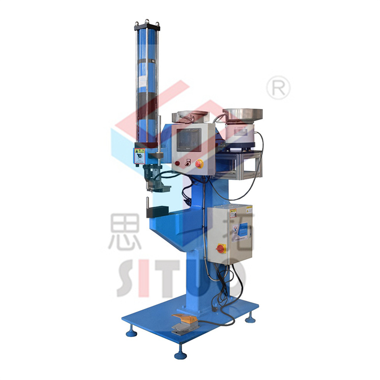 无锡思拓双螺母自动送料压铆机,双工位振动盘送料结构,效率比人工旋料快1.5倍,智能储料系统,减少振动盘工作频率,降低噪声,采用公司新型的钉料下反纠错系统,有效保证压装品质。无锡思拓双螺母自动送料压铆机别的产品名还有哪些呢,有的客户称为无锡思拓全自动送料铆接机,也有的客户直接叫螺母自动上料压铆机,甚至还有的客户朋友直接简称为:螺母压铆机,螺柱压铆机,液压压铆机,, 防压手压铆机, 等等