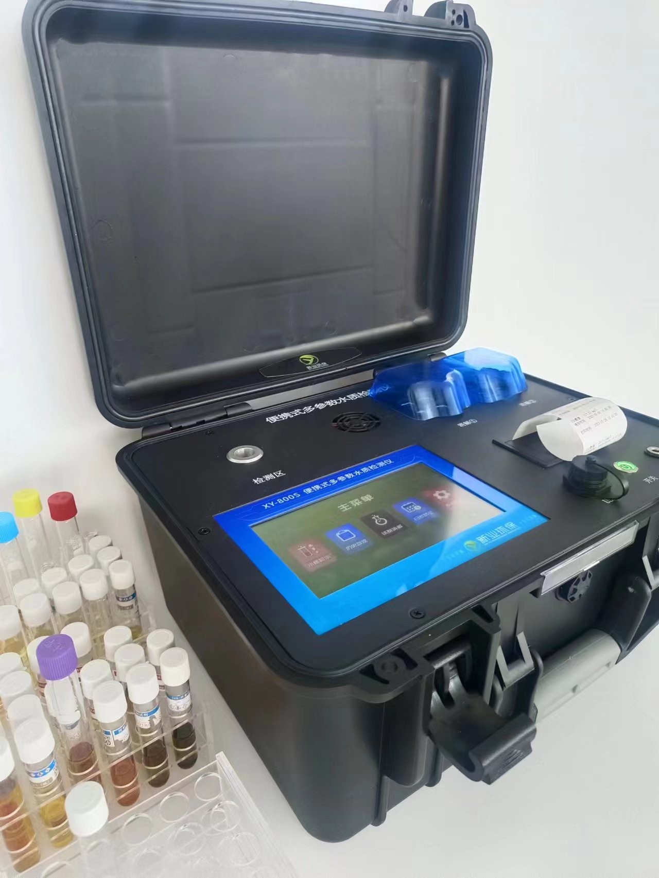 产品信息:XY-800S水质检测系统采用军用级高强度防水手提安全箱一体化设计,360?旋转检测模块,双温区消解模块,数字化集成系统,彩色液晶触摸屏,进口光源,水质专用光纤检测系统,内置高容量锂电池,仪器性能稳定、测量准确、测定范围广、功能强大、操作简单. 仪器特点: *360?旋转独立三通道检测系统 *双温区智能消解,同时消解多项目 *水质专用光纤检测系统 *进口光源,进口检测器 *7英寸触摸彩色屏 *内置大容量锂电池 *专用水质检测系统 *军用级高强度防水一体化设计 技术参数: 1. 样品检测:旋转360?独立三通道检测系统; 2. 电池:内置大容量锂电池40000mAh 3. 光学检测系统:光纤检测系统 4. 显示:7英寸彩色液晶触摸屏 5. 自动校准:仪器具有自动校准功能 6. 自检:仪器具有自动检测,出错报警功能; 7. 光源:进口冷光源(可达10万小时以上) 8. 检测准确度:≤?5% 9. 波长范围:340-900nm 10. 波长准确度:?1nm 11. 波长半宽:4nm 12. 分辨率:0.001 13. 重复性:≤?2% 14. 存储:可存储100万组数据,可自由调用查看 15. 测量项目:COD 、氨氮、总磷、总氮、浊度、悬浮物、多项指标 16. 测量范围:COD(低量程:5-150mg/L、高量程:20-10000mg/L)、氨氮(0.01-100mg/L)、总磷(0.01-8mg/L)、总氮(0.01-80mg/L)、浊度(0-2500NTU) 17. 预存曲线:预存100条标准曲线和50条拟合曲线,并可修改和添加曲线 18. 双温区消解:双温区8孔多功能消解 19. 消解温度范围:0-200℃ 20. 消解模块具有双保险高温过载保护; 21. 专用水质消解系统,固化常规消解项目,一键式操作消解,消解完成自动报警提示。 22. 打印方式:标配内置热敏打印机 数据传输:配备USB接口和串口传输功能,蓝牙接口选配;
