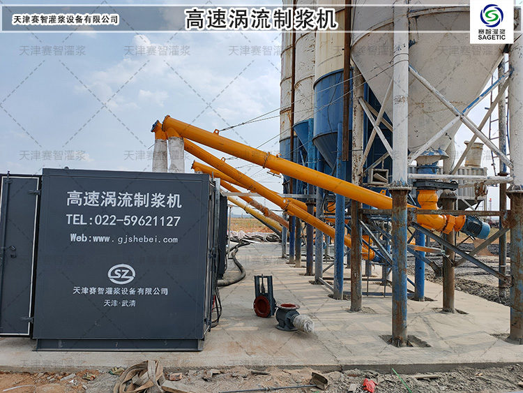 自动化水泥制浆站带有称重系统,自动设置水灰比,自动化程度高,无需基建,转场方便,随吊随走, 节省人工。 赛智高速涡流制浆机,优点就是耐用,制浆速度快,制浆量大,浆液混合均匀。