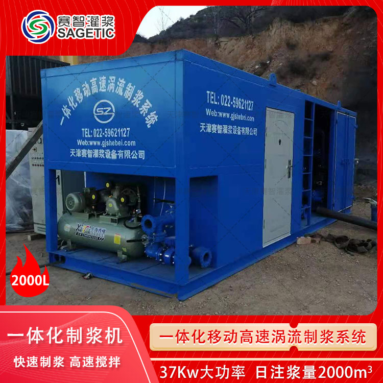 赛智灌浆高速涡流制浆机,制浆专用设备,将制浆工艺中所用的设备集中在集装箱内,完成搅拌,制浆,注浆等工序。浆液搅拌均匀,节能,效率高。