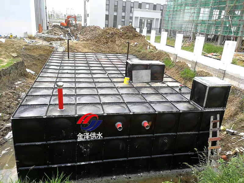 我们可以通过地埋水箱的设置来看,为什么我们能那么肯定的说它的优点: 1 水箱材料:一体成型,由不锈钢板及碳钢板分别模压后叠加而成。模压后四角需焊接,无焊缝,不易腐蚀生锈。 2 内部加强件:热镀锌热镀锌钢管,纵横交错,抵挡水箱顶部及侧壁来自覆土的压力。 3 防腐技术处理:整体箱体外侧进行防腐处理,防止常年地下的阴湿潮对设备的腐蚀。 4 管道:管道制作焊接后不会有跑、冒、滴、漏,确保消防安全。 5 螺丝:螺丝热镀锌处理,钢度足够,使用耐久,不会因为断裂而致水箱漏水,安全性更高。 6 钢结构:采用14号工字钢加固泵房内部,用以抵挡顶部及四周的压力。 7爬梯设置:楼梯采用踏步组合楼梯,方便人员进入检修和售后。 8安装工艺:地埋式箱泵一体化遇到的浮力问题,因泵站四周及底部的积水对泵站产生较大浮力,泵站一端翘起,导致水箱变形撕裂已不复存在,抗浮式的基础设计,将侧板与整体基础连接,浮力再大也不怕。