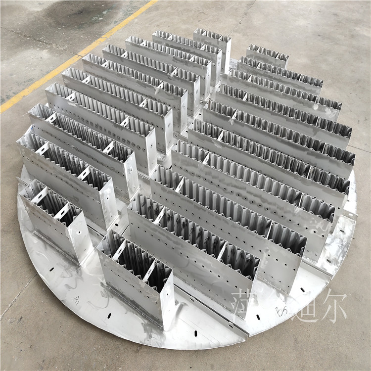 不锈钢卂孔板波纹填料在整个塔截面,几何形状规则、对称、均匀。它规定了气萢流路克服了沟流和壁流现象,压降可以很小。在相同的通量和压降下,与敬堆埴料相相比,可以安排更大的表面积,因比效率高。由于其结构的规整性,合理的设计可以做到几乎无放大效应。