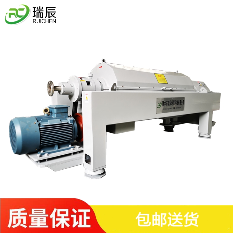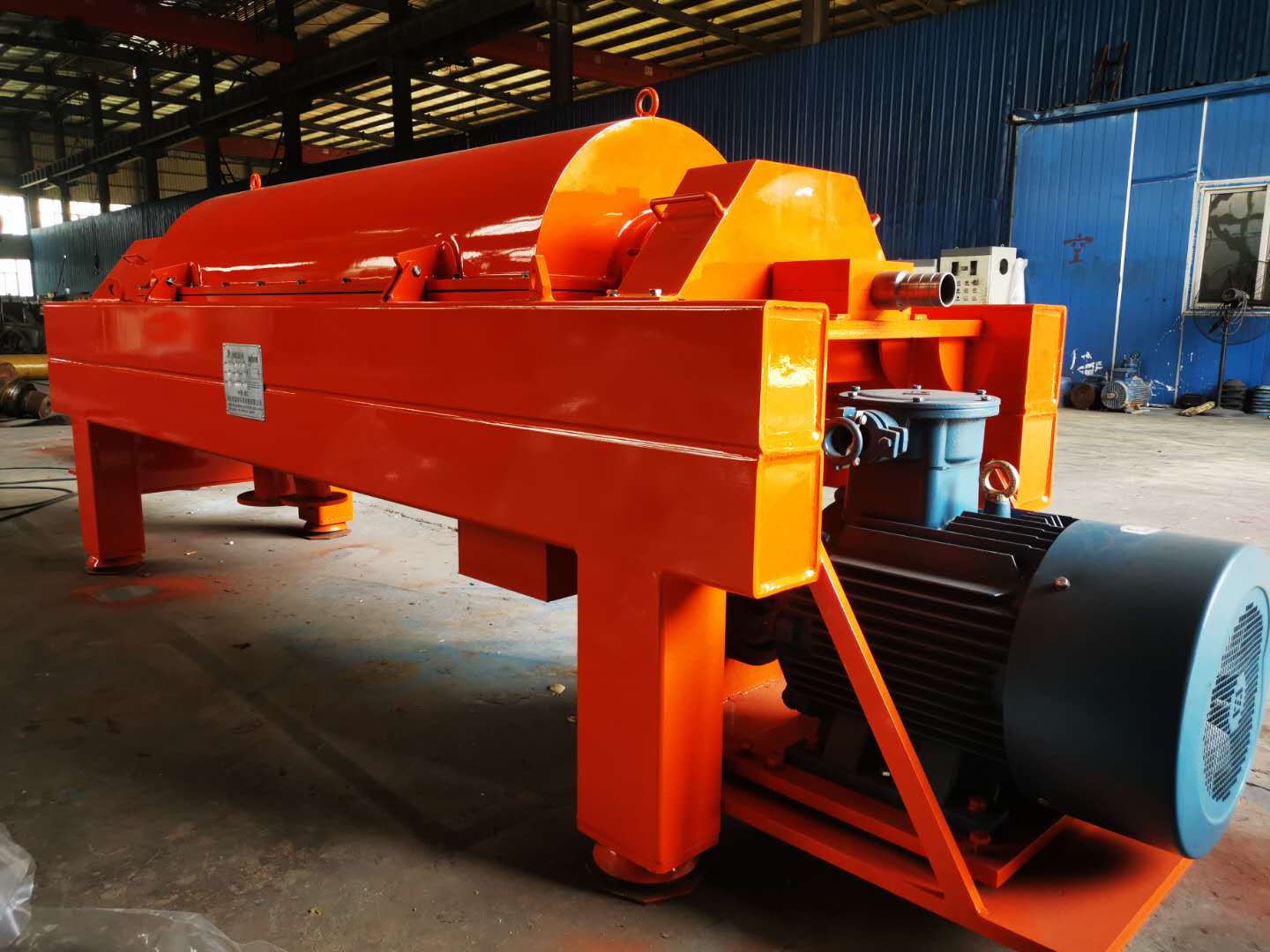 卧螺离心机是利用离心沉降原理分离悬浮液的设备。它的工作原理是当要分离的悬浮液进入离心机的转鼓里后,比液相密度大的固相颗粒再转鼓的离心力作用下快速沉降到转鼓内壁,离心机内部的螺旋输送器把沉积在转鼓内壁的固相推向转鼓小端的干燥区进一步脱水,然后经出渣口排出,分离后的清液则从转鼓大端溢流堰流出。这款卧螺离心机能在全速运行状态下连续进料、分离、洗涤和卸料。