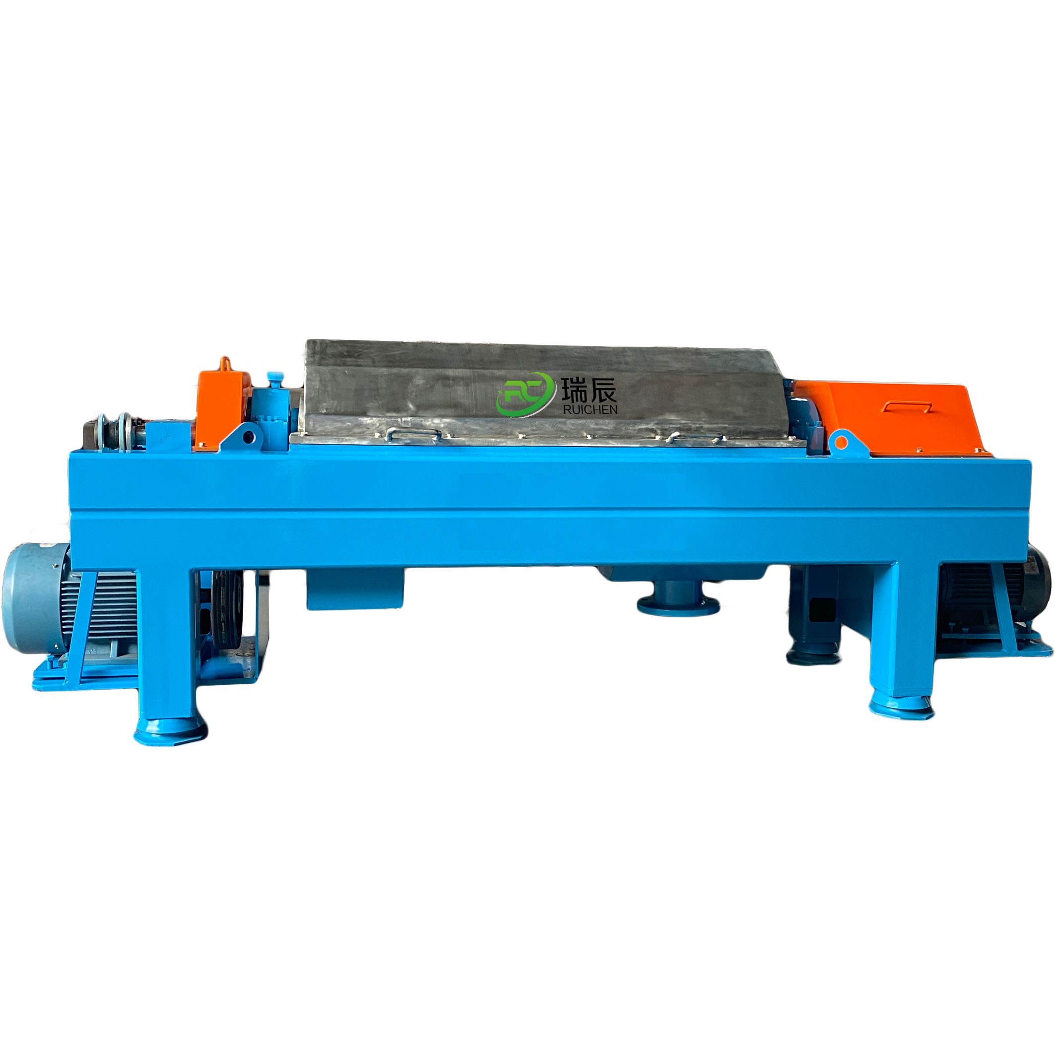 动植物油除渣分离设备简称:卧式螺旋离心机,是一种新型的卧式螺旋卸料离心机,其工作原理是利用固-液比重差,并依靠离心力场使之扩大几千倍,固相在离心力的作用下被沉降,从而实现固液分离,并在特殊机构的作用下分别排出机体。当离心过滤中因固体颗粒易堵塞过滤介质而过滤阻力过大时或细颗粒漏失过多时,过滤式离心机就无法达到理想的分离效果,此时沉降式离心机就具有了过滤式不可比拟的优势。利用离心沉降原理,可以把粒径很小的固相颗粒从液相中分离开来。