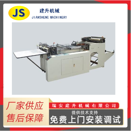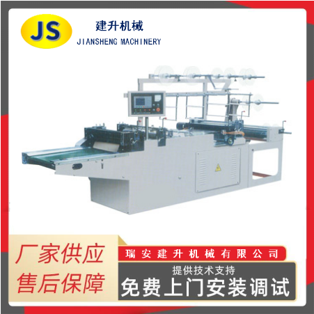 用途:适用于PE膜的封切,封口牢固对折准确,全自动电眼跟踪。主要用来生产塑料薄膜方底袋、四方袋、立体袋。 性能及特点 1、该系列机采用电脑控制、电眼追色、静电消除器、自动计数、自动恒温控制及报警等装置,性能稳定,操作方便,封底牢固。 2、一机多用:可订做不同大小形式的方底袋机。