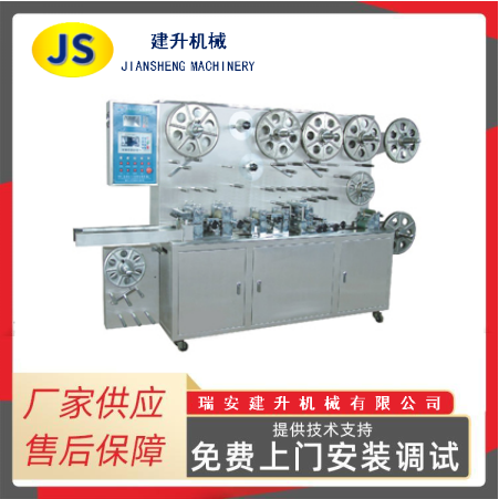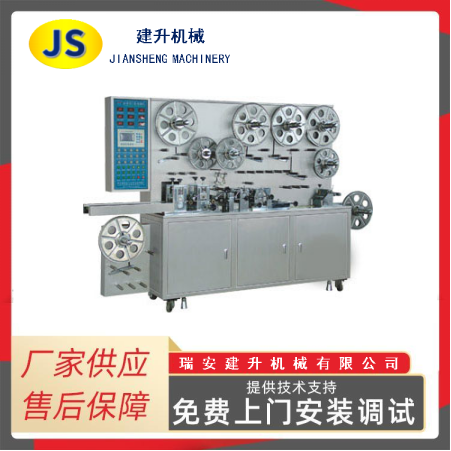 本机用于一般外科,手术外科中保护伤口用的敷料贴,裁切机械。即队胶粘带、吸水垫、剥离纸、离型纸等卷筒形材料进行自动剥离、粘贴、复合、切断,一次成型。