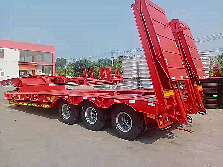 低平板半挂车针对挖掘机、装载机等大型工程机械的运输,在设计上有特殊要求。在低平板半挂车承载能力、安全系数、抗造水平进行了大量的研究和路测,打造了一款更省钱少维修的低平板半挂车,具有自重轻、承载好、更省钱等3个特点。由于低平板半挂车主要用于挖掘机、装载机等重型工程机械的运输,大梁是低平板半挂车的薄弱点,大梁断裂的情况时有发生。这就要求低平板半挂不仅车辆承载能力强,而且要保证装卸安全。